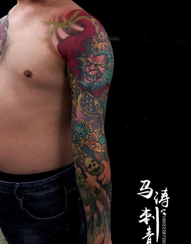 当前位置: 首页 >天津市纹身店-马涛刺青纹身图案>孙悟空纹身图片_成品手臂手部肩部传统人物原创纹身图案