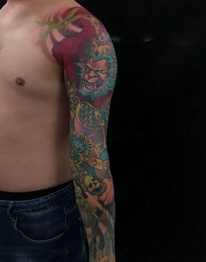 当前位置: 首页 >天津市纹身店-马涛刺青纹身图案>孙悟空纹身图片_成品手臂手部肩部传统人物原创纹身图案