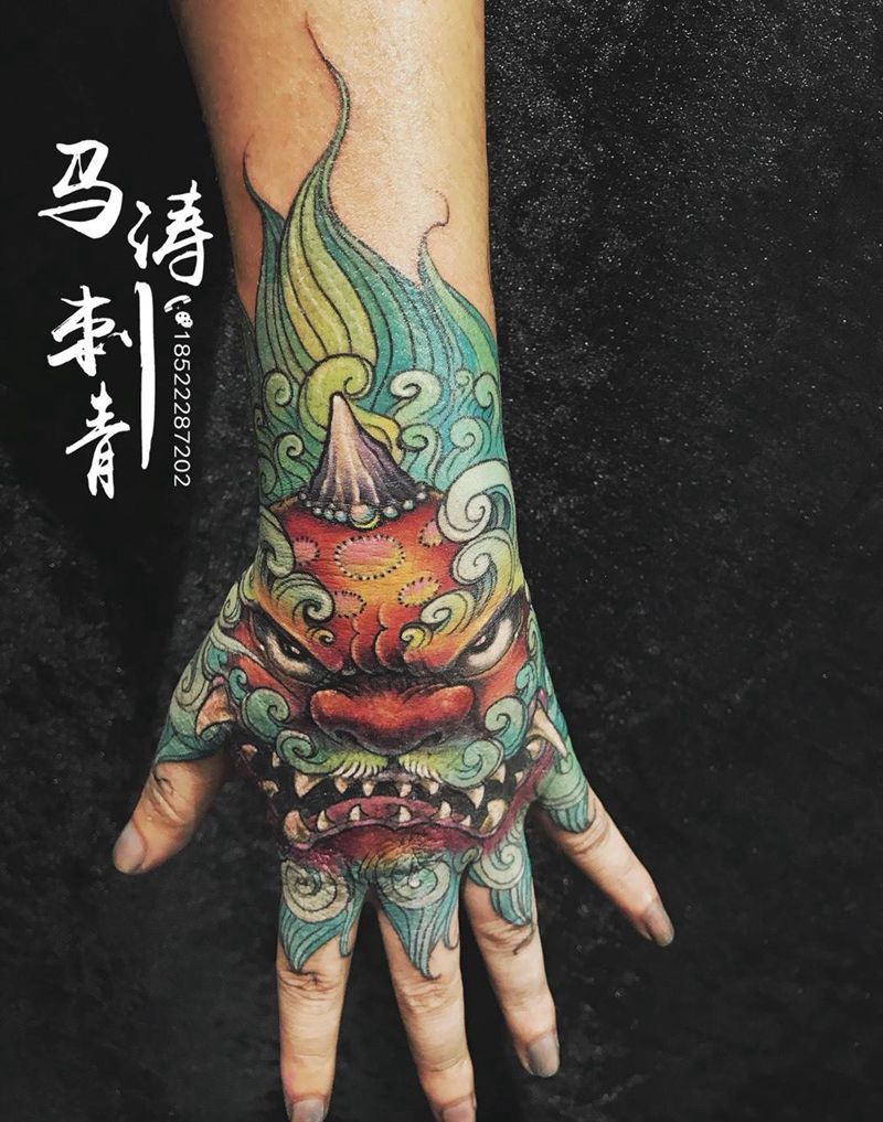 当前位置: 首页 >天津市纹身店-马涛刺青纹身图案>手面唐狮纹身图片_传统手臂手部成品几何动物纹身图案