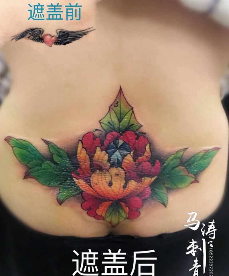 遮盖腰花纹身图片_腰部成品手稿原创纹身图案