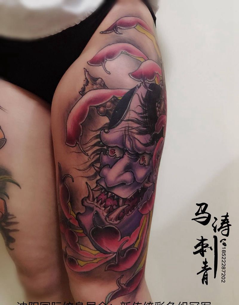 般若原创纹身图片_手稿成品原创传统清新人物腿部纹身图案