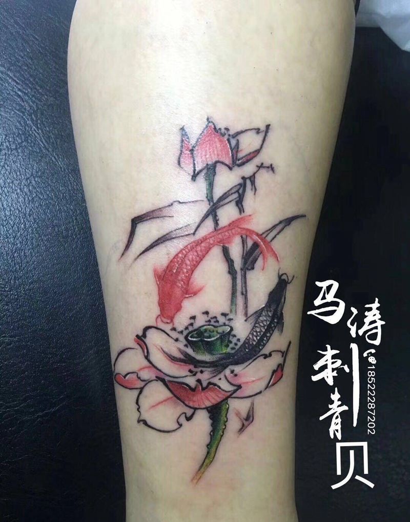 一组15张莲花纹身手