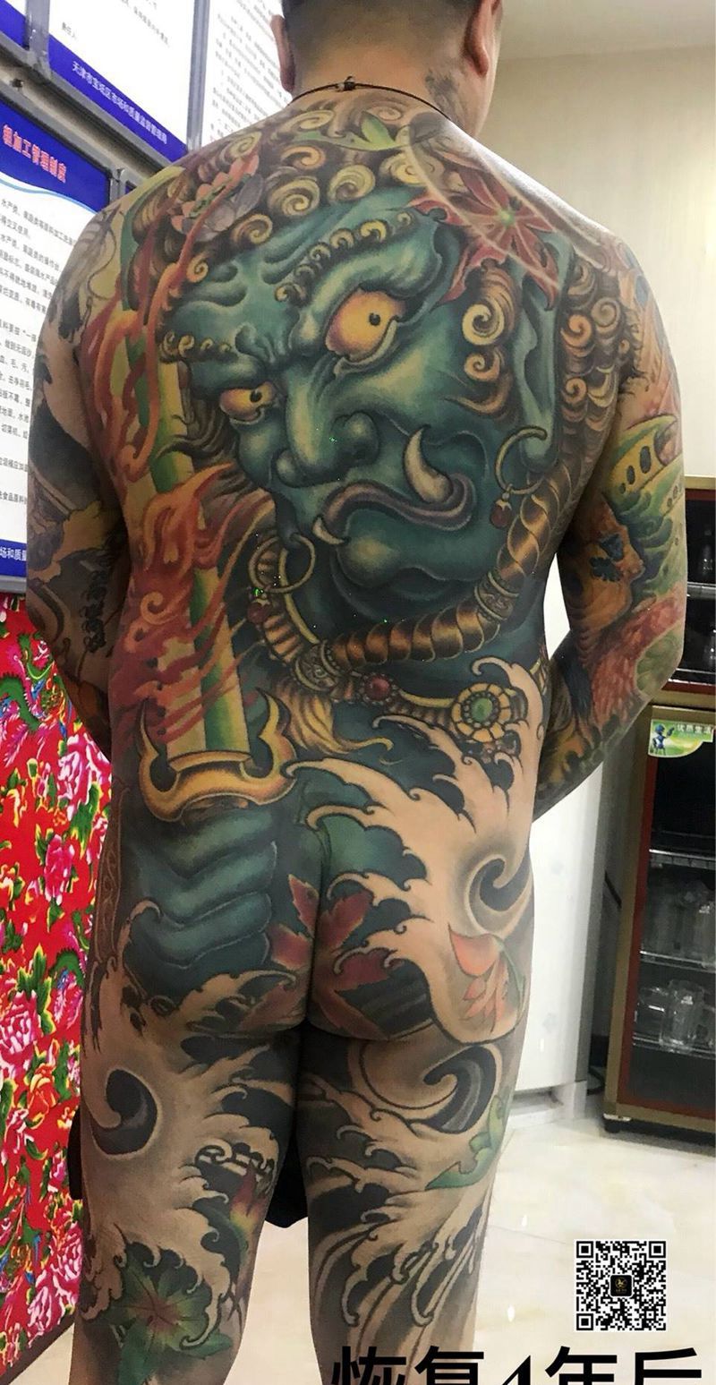 黑灰满背纹身图案