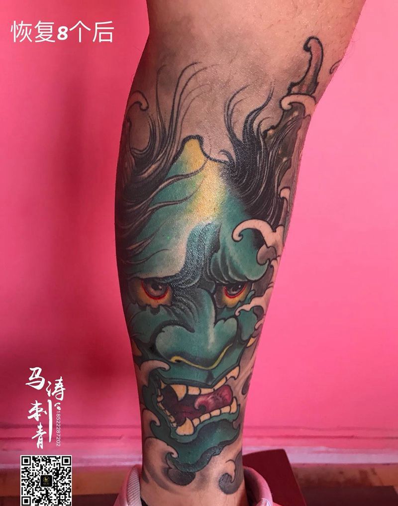 • T网红王老大花腿龙纹身图片_腿部新传统纹身图案