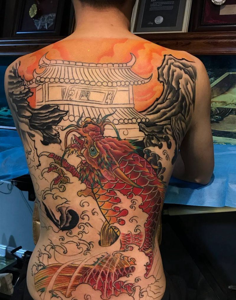 • T云龙九郎纹身图片_背部老传统云龙九郎纹身图案