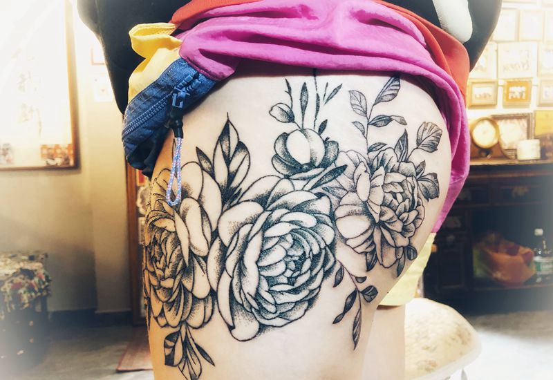 小花纹身图片_臀部腿部点刺图腾纹身图案