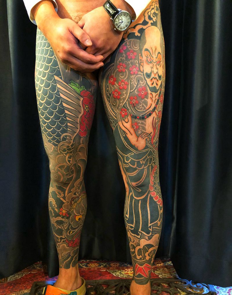 • T网红王老大花腿龙纹身图片_腿部新传统纹身图案