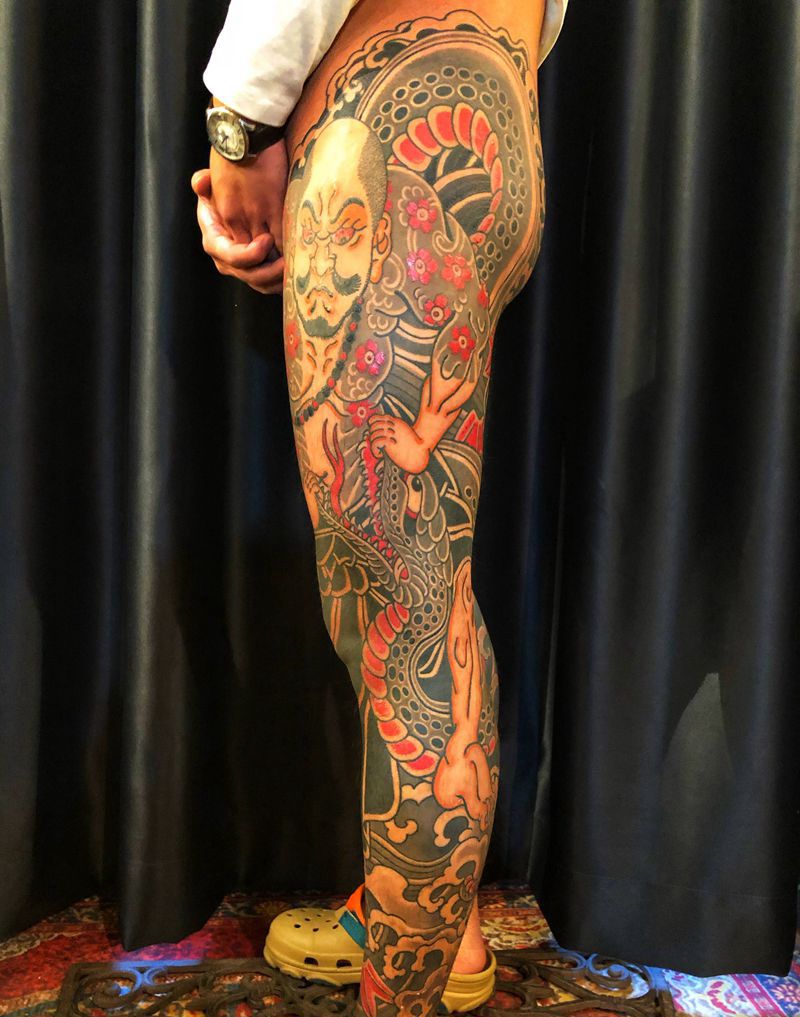 • T网红王老大花腿龙纹身图片_腿部新传统纹身图案