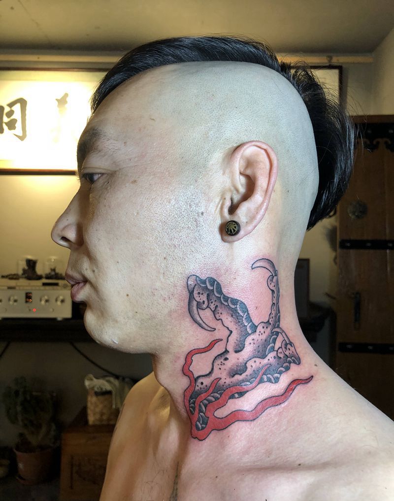 招財龍爪手纹身图片_颈部老传统纹身图案