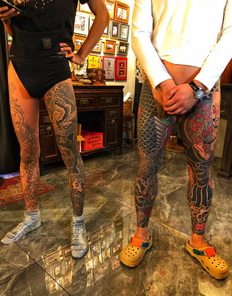 • T网红王老大花腿龙纹身图片_腿部新传统纹身图案
