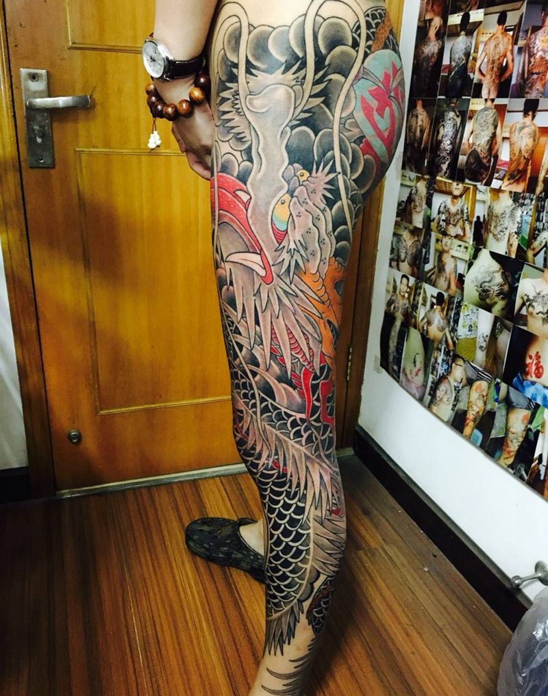 • T网红王老大花腿龙纹身图片_腿部新传统纹身图案