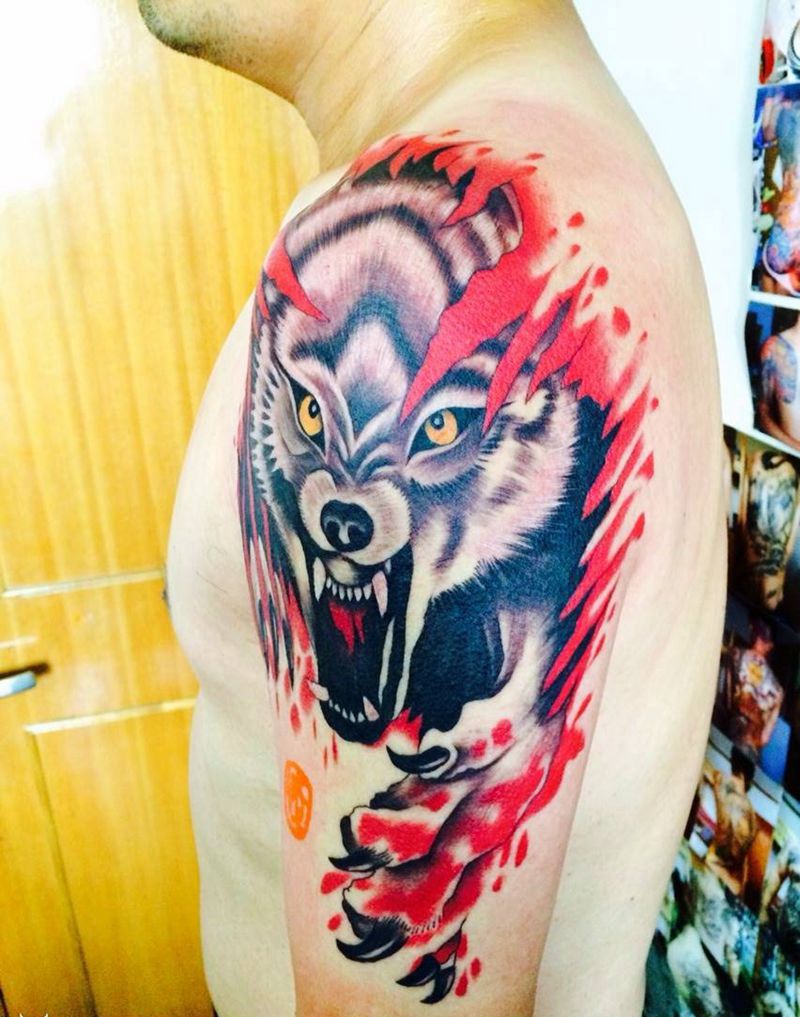 • 纹身吧推荐的披肩图腾半胛纹身图案作品展示