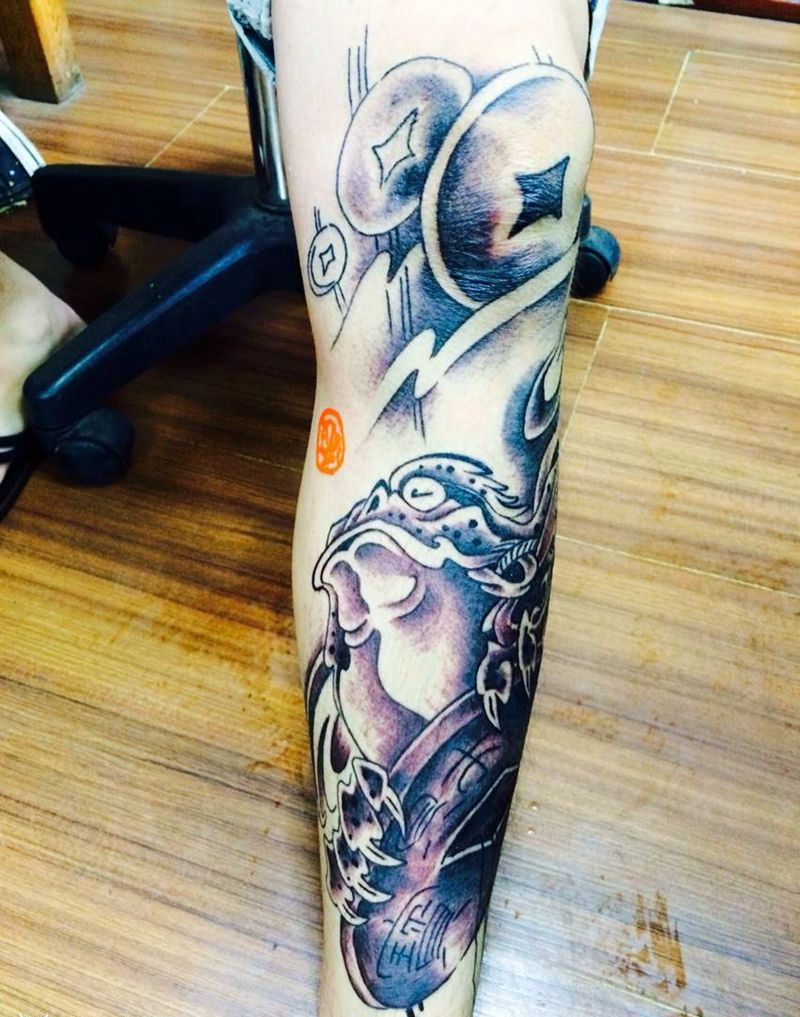 • T网红王老大花腿龙纹身图片_腿部新传统纹身图案