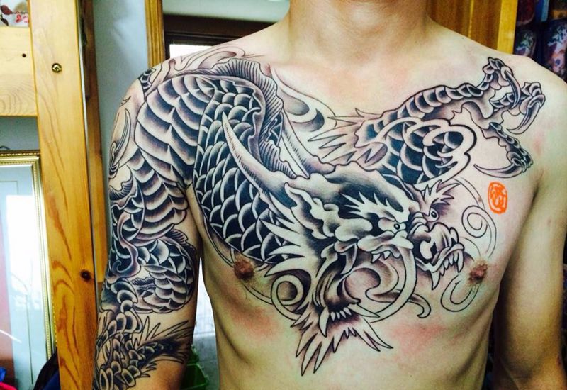 • T云龙九郎纹身图片_背部老传统云龙九郎纹身图案