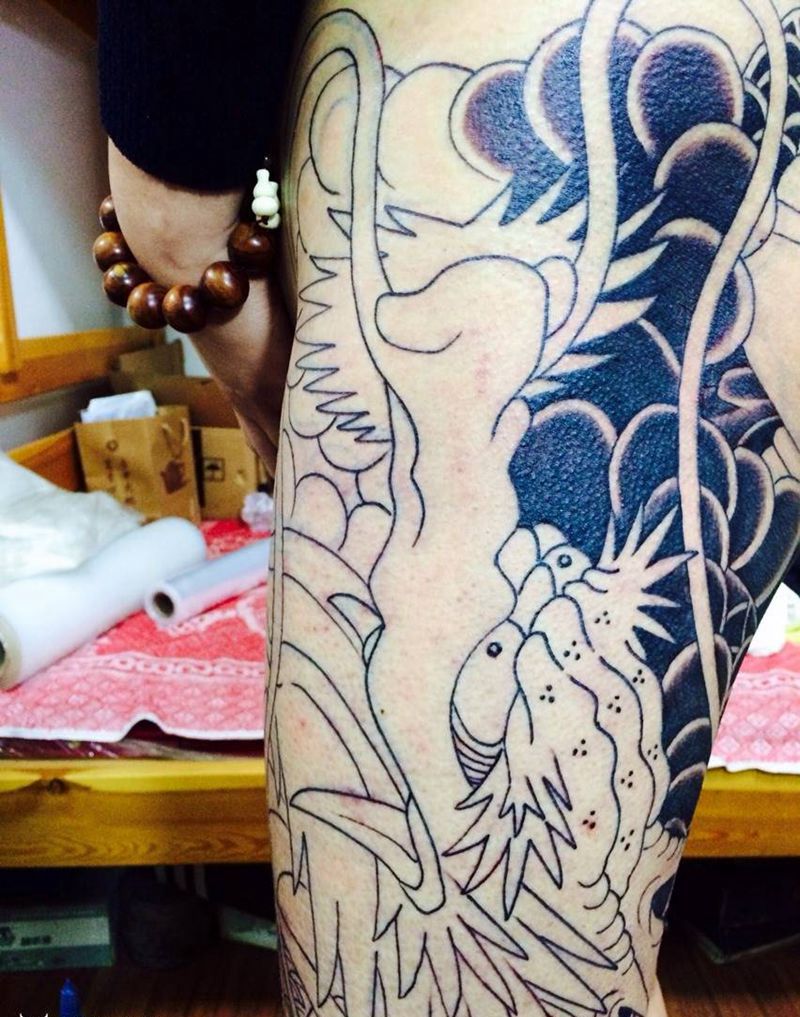 • T网红王老大花腿龙纹身图片_腿部新传统纹身图案