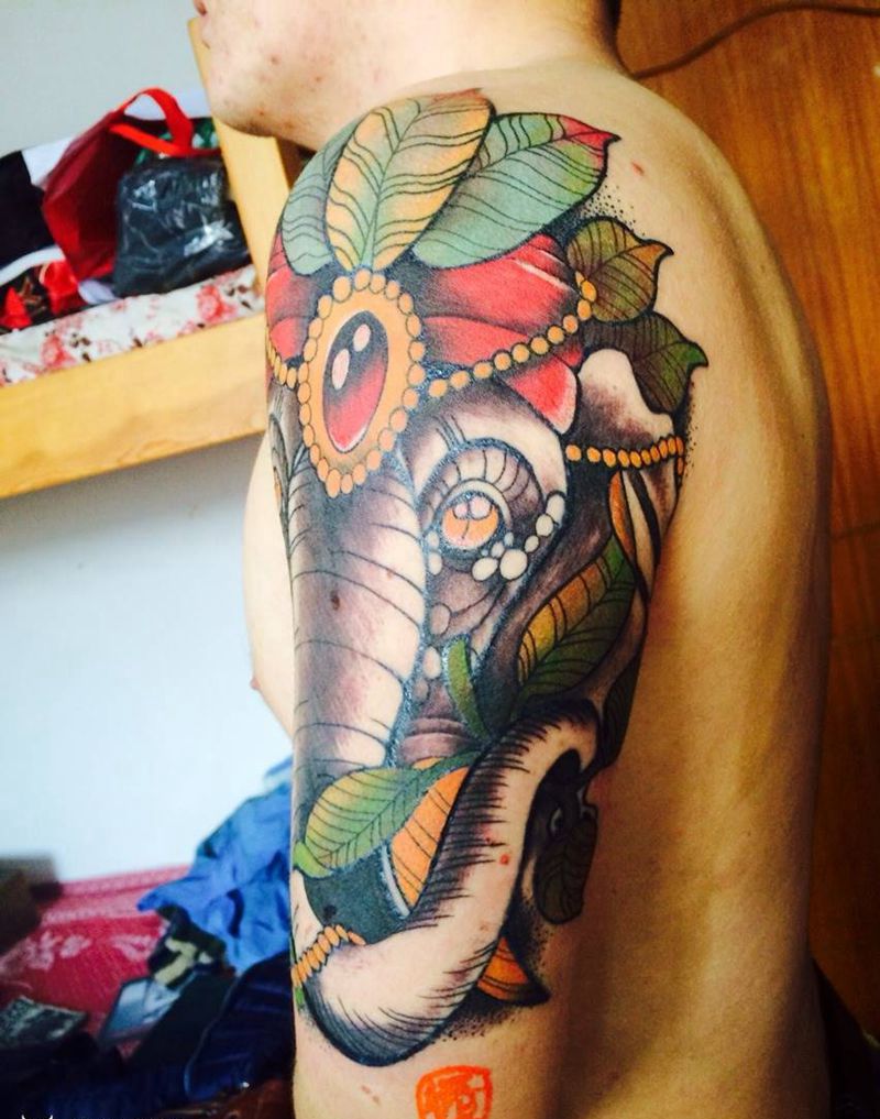 当前位置: 首页 >天津市纹身店-同義誠刺青處纹身图案>象神纹身图片_