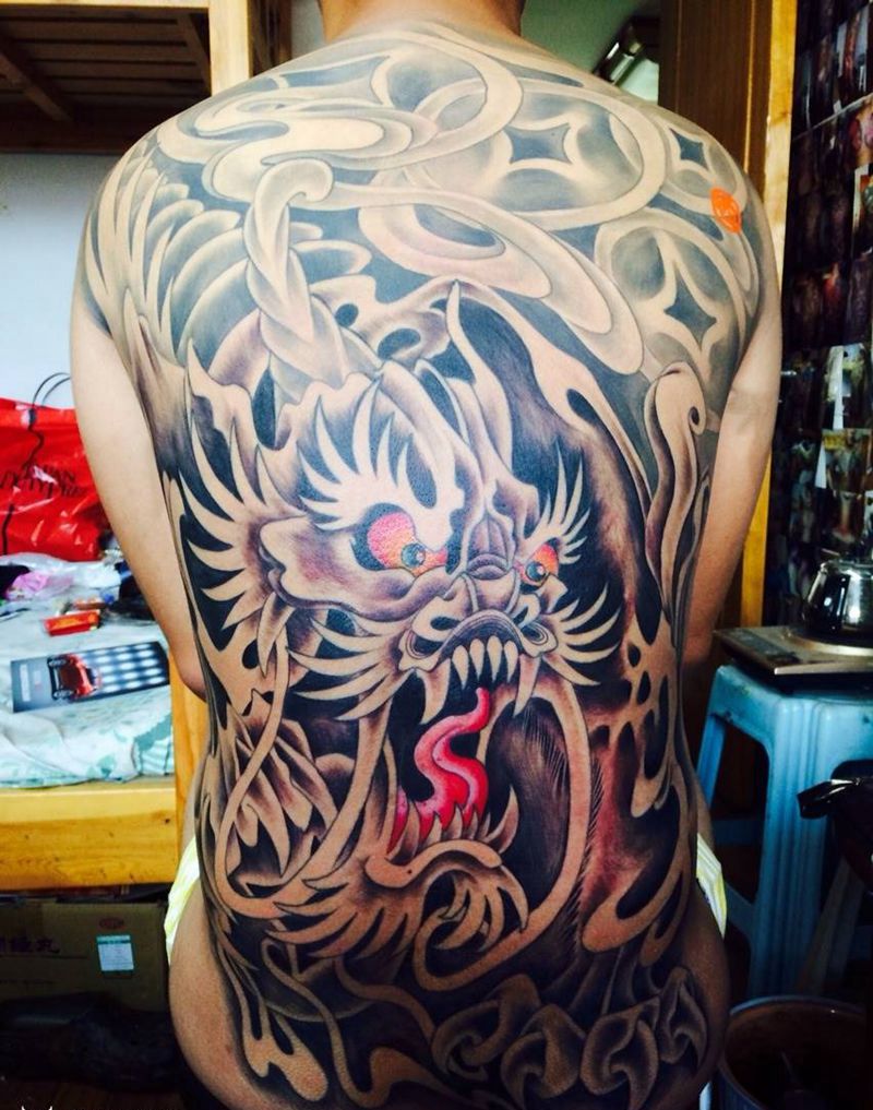 黑灰满背纹身图案