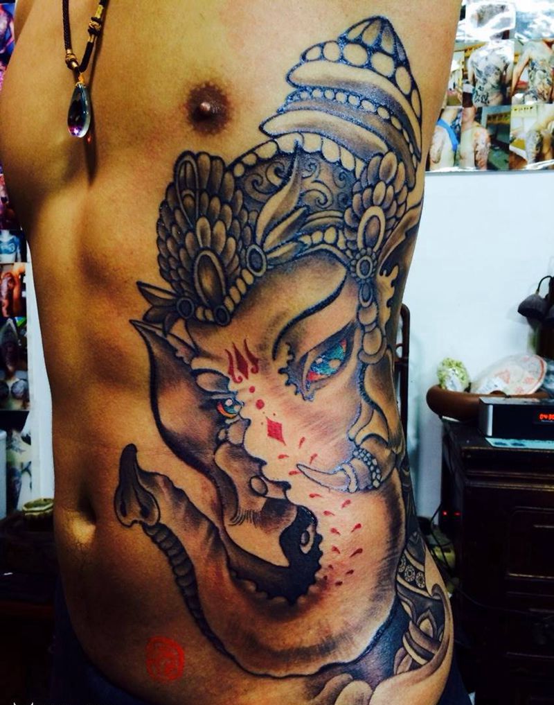 当前位置: 首页 >天津市纹身店-同義誠刺青處纹身图案>泰国象神13512233444纹身图片_