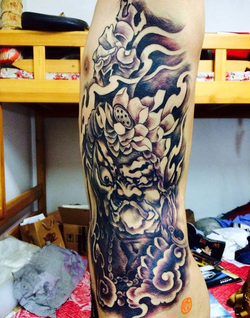 • T网红王老大花腿龙纹身图片_腿部新传统纹身图案