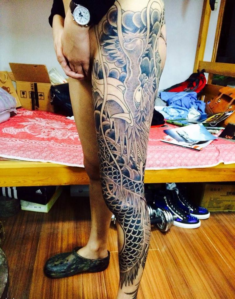 • T网红王老大花腿龙纹身图片_腿部新传统纹身图案