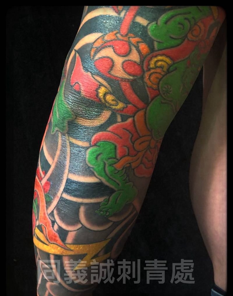 • T网红王老大花腿龙纹身图片_腿部新传统纹身图案