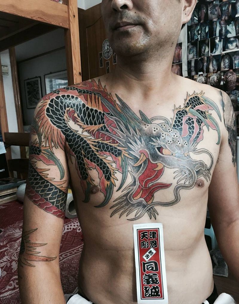 • 男性大花胸_42张优秀的男性大花胸纹身图案图片
