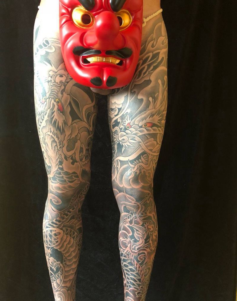 • T网红王老大花腿龙纹身图片_腿部新传统纹身图案