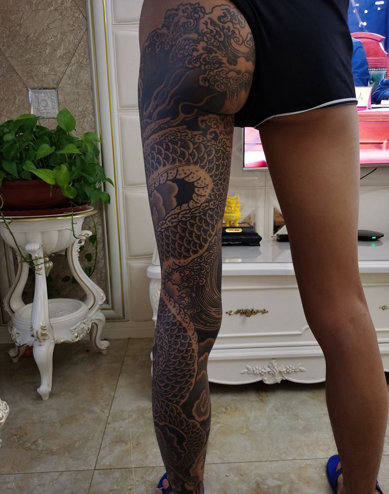 当前位置: 首页 >天津市纹身店-同義誠刺青處纹身图案>盘龍腿纹身图片_腿部水墨纹身图案