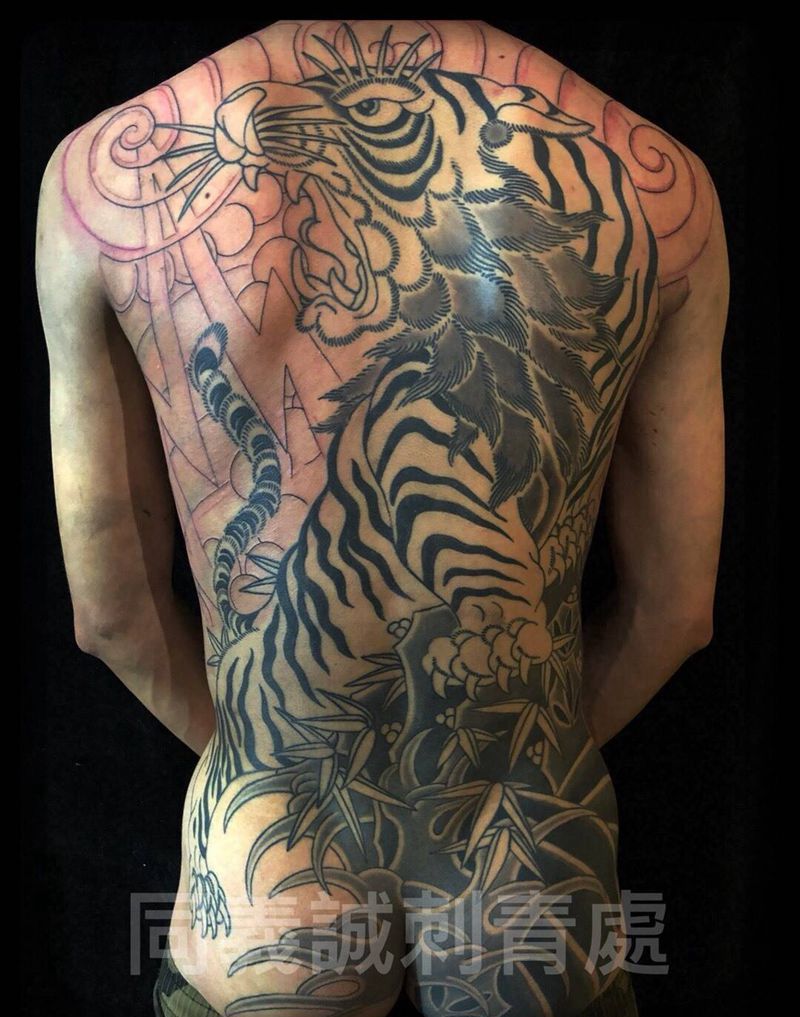 • 黑灰满背纹身图案