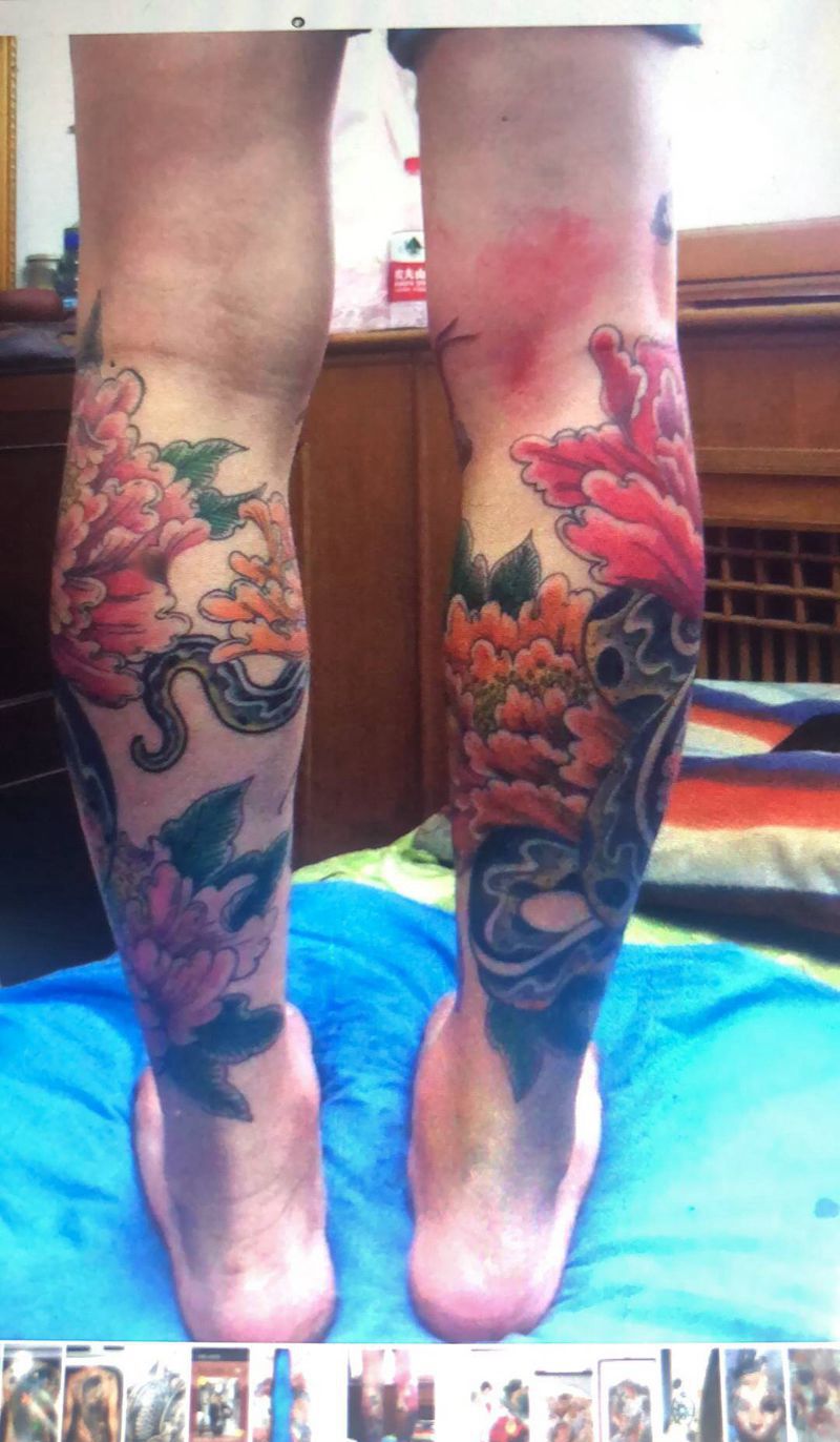 当前位置: 首页 >天津市纹身店-同義誠刺青處纹身图案>蟒蛇戲牡丹纹身图片_腿部老传统纹身图案