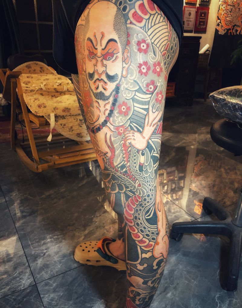 • T网红王老大花腿龙纹身图片_腿部新传统纹身图案