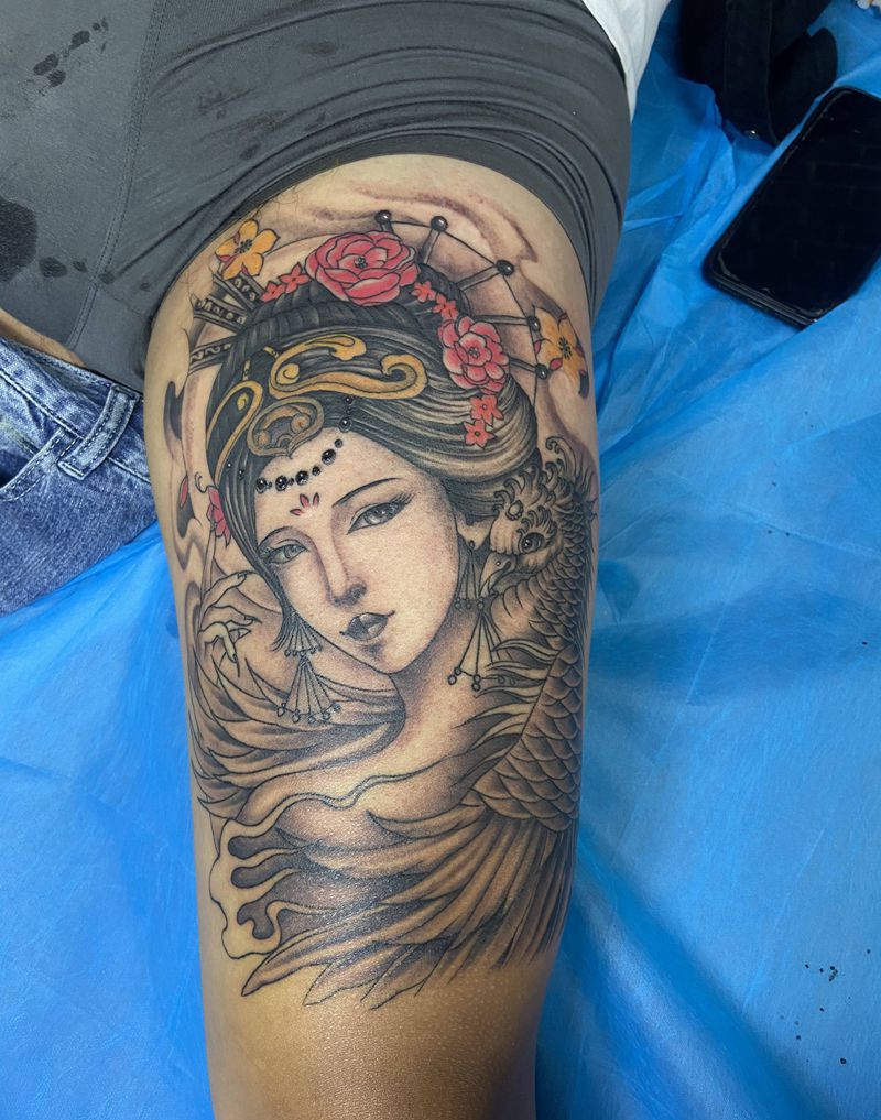 当前位置: 首页 >天津市纹身店-铭旺刺青纹身图案>艺伎纹身图片_腿部纹身图案