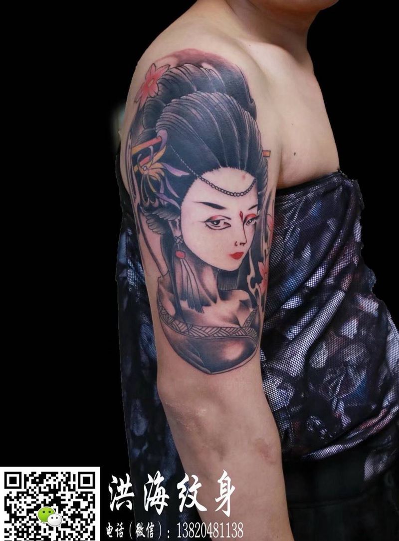 当前位置: 首页 >天津市纹身店-天津大港洪海纹身店(胜利街店)纹身图案>艺妓纹身图片_