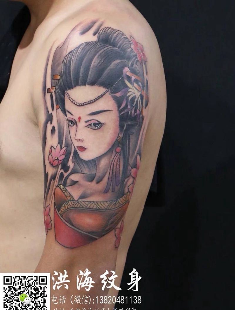 当前位置: 首页 >天津市纹身店-天津大港洪海纹身店(胜利街店)纹身图案>艺妓纹身图片_