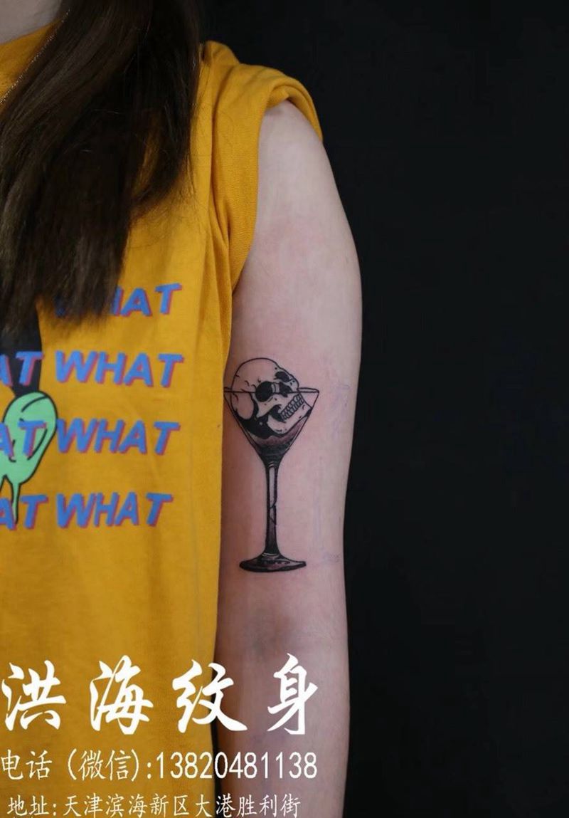 当前位置: 首页 >天津市纹身店-天津大港洪海纹身店(胜利街店)纹身图案>酒杯纹身图片_成品手臂欧美静物纹身图案