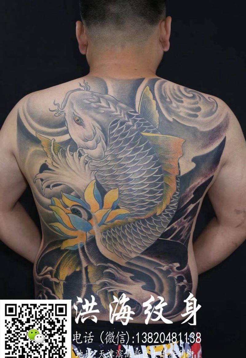 当前位置: 首页 >天津市纹身店-天津大港洪海纹身店(胜利街店)纹身图案>满背鱼纹身图片_成品背部传统动物纹身图案