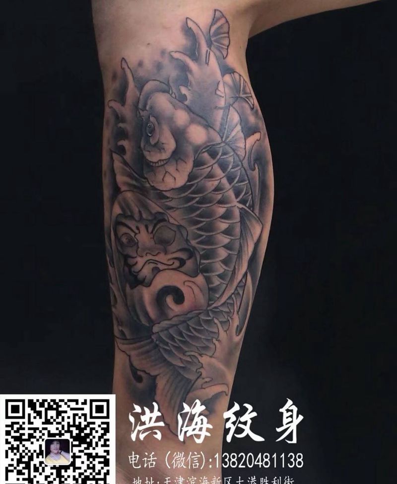 当前位置: 首页 >天津市纹身店-天津大港洪海纹身店(胜利街店)纹身图案>小腿鱼纹身图片_