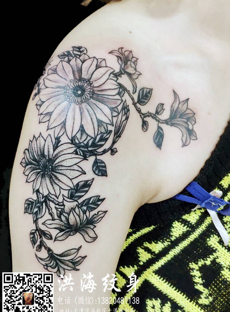 • 女性大花胸纹身_43张霸气漂亮的女性大花胸纹身图案作品