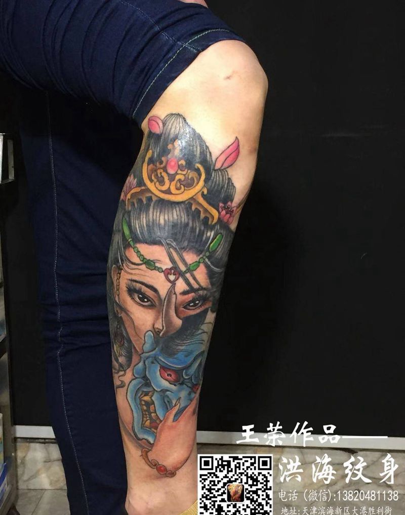当前位置: 首页 >天津市纹身店-天津大港洪海纹身店(胜利街店)纹身图案>艺妓纹身图片_