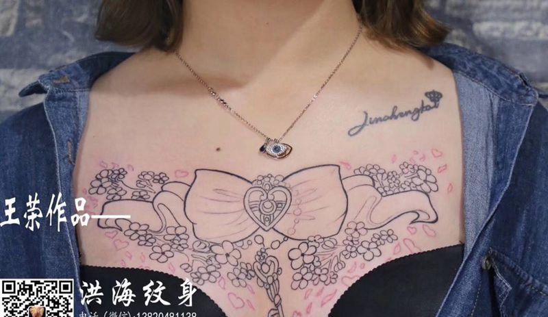 • 女性大花胸纹身_43张霸气漂亮的女性大花胸纹身图案作品