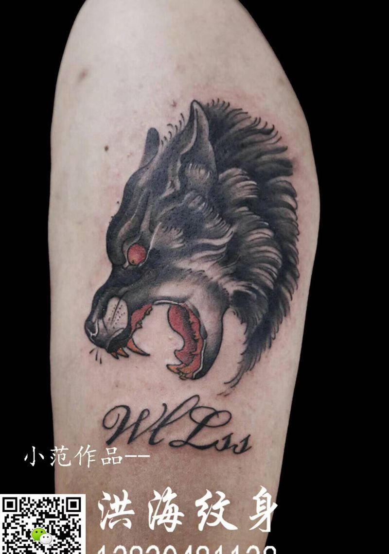 当前位置: 首页 >天津市纹身店-天津大港洪海纹身店(胜利街店)纹身图案>狼头纹身图片_手臂纹身图案