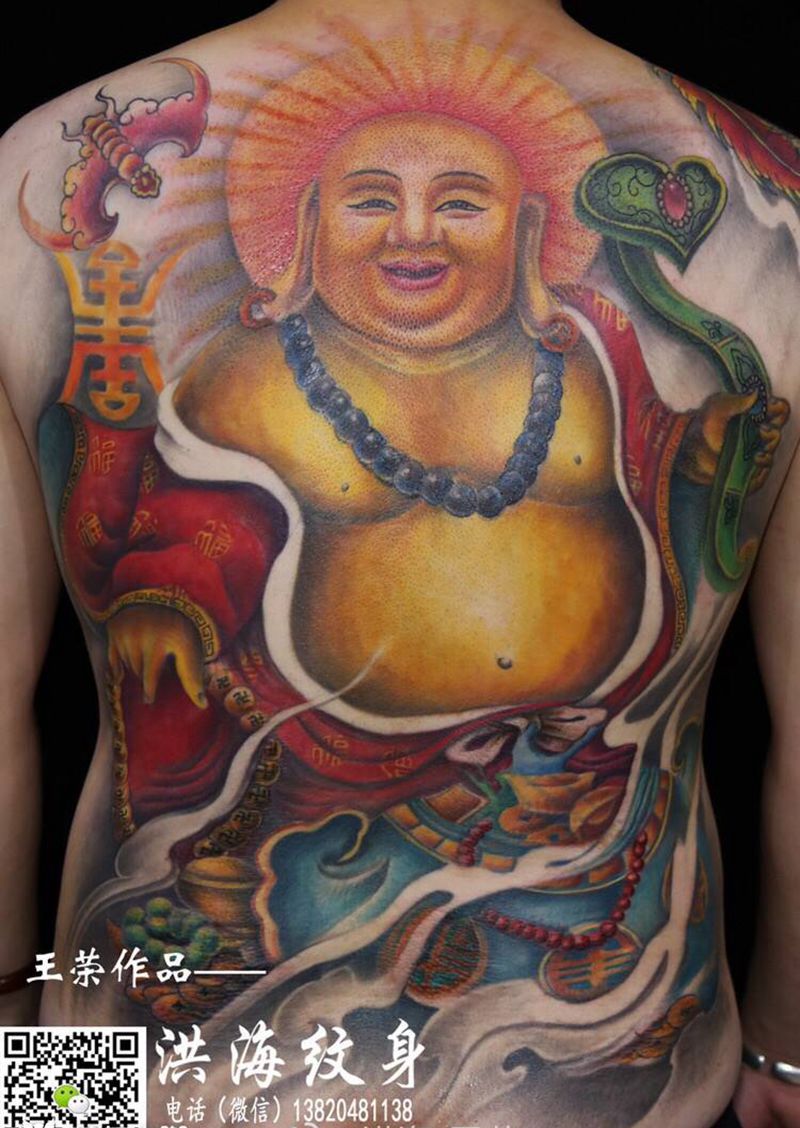 弥勒佛纹身纹身图片_背部新传统纹身图案
