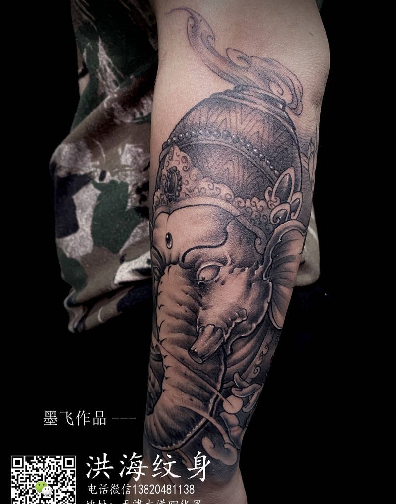 当前位置: 首页 >天津市纹身店-天津大港洪海纹身店(胜利街店)纹身图案>象神纹身图片_手臂新传统纹身图案