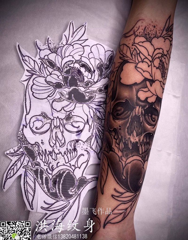 当前位置: 首页 >天津市纹身店-天津大港洪海纹身店(胜利街店)纹身图案>骷髅纹身图片_手臂新传统纹身图案