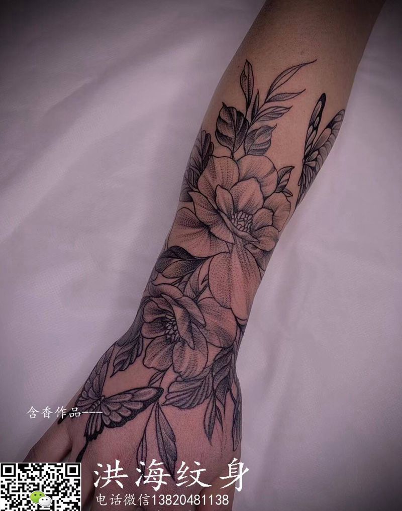 当前位置: 首页 >天津市纹身店-天津大港洪海纹身店(胜利街店)纹身图案>素花纹身图片_手臂手部纹身图案