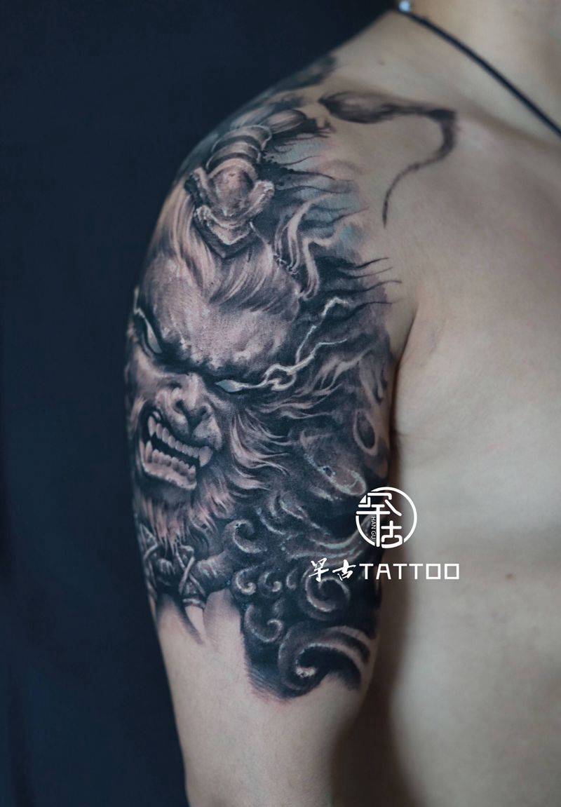 黑灰满背纹身图案