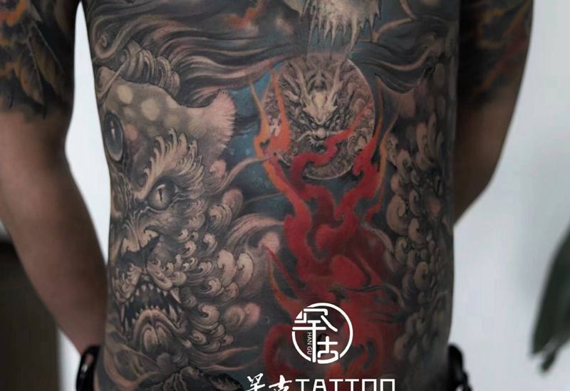 • T云龙九郎纹身图片_背部老传统云龙九郎纹身图案