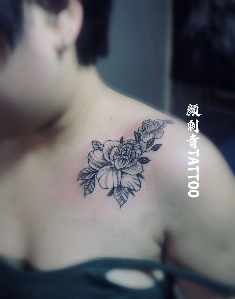 • 女性大花胸纹身_43张霸气漂亮的女性大花胸纹身图案作品