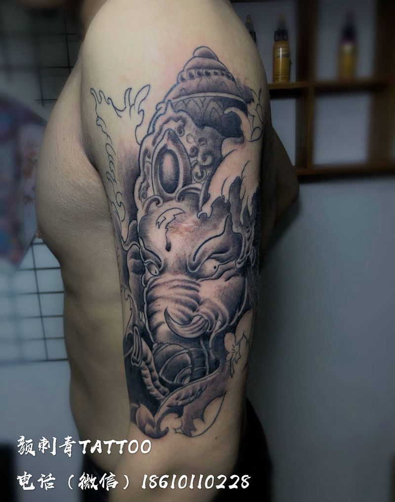 当前位置: 首页 >天津市纹身店-颜刺青纹身TATTOO纹身图案>象神纹身图片_手臂纹身图案