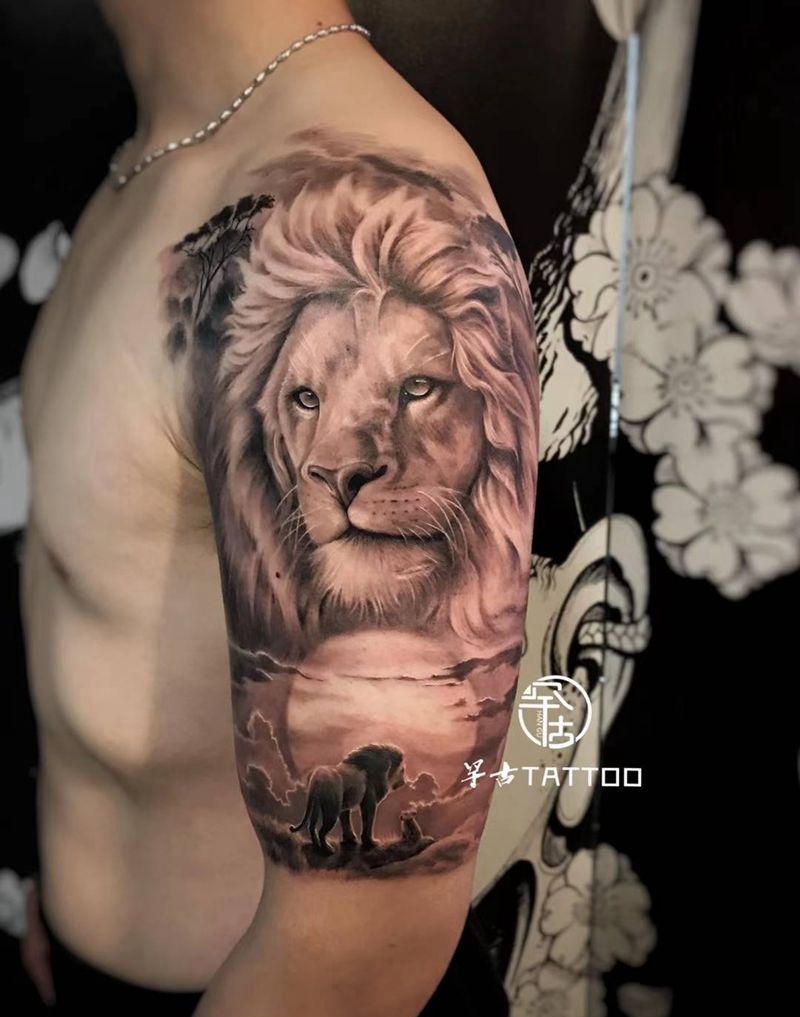《狮子王》纹身图片_手臂肩部欧美写实天津市纹身图案